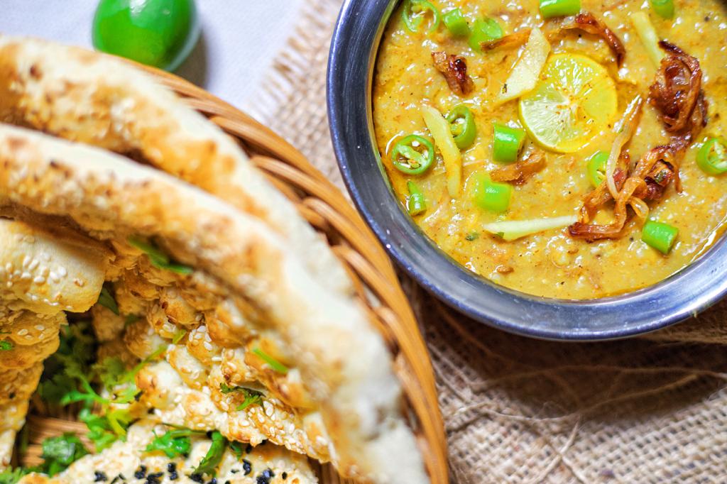 Signature Slow-Cooked Haleem & Naan A labor of patience and spice. Our Haleem is slow-simmered for over 12 hours, blending tender meat, wholesome grains, and lentils into a thick, velvety stew. Infused with a secret blend of garam masala and bone broth, it’s served with a fresh, crisp-from-the-tandoor Naan. We top it off with a “Tarka” of sizzling ghee, crispy onions, julienne ginger, and a squeeze of fresh lime for the perfect citrus lift.